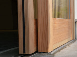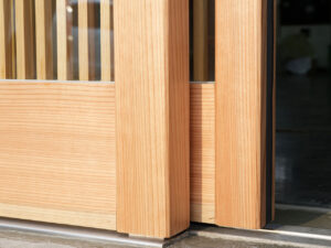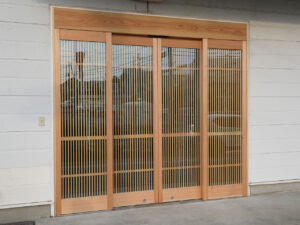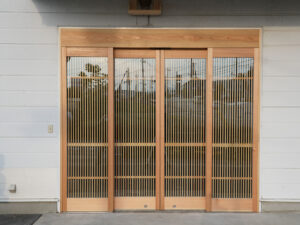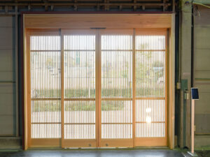 ドアは千本格子を採用し、日本古来の和のデザインを感じさせる趣ある仕上がりに。